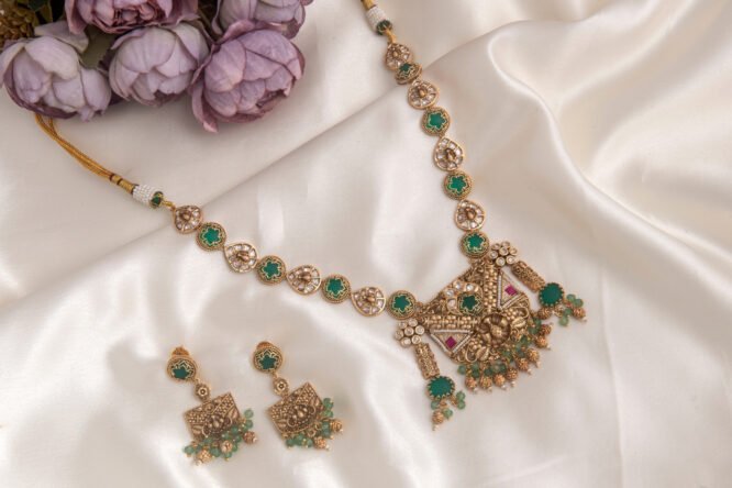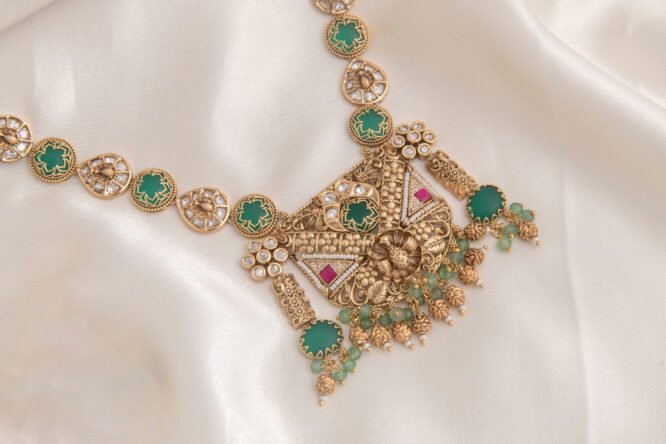 Heritage-inspired kundan jewellery with detailed craftsmanship.