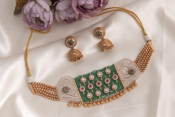 Premium kundan jewellery crafted with 24 carat gold polish and fine detailing.