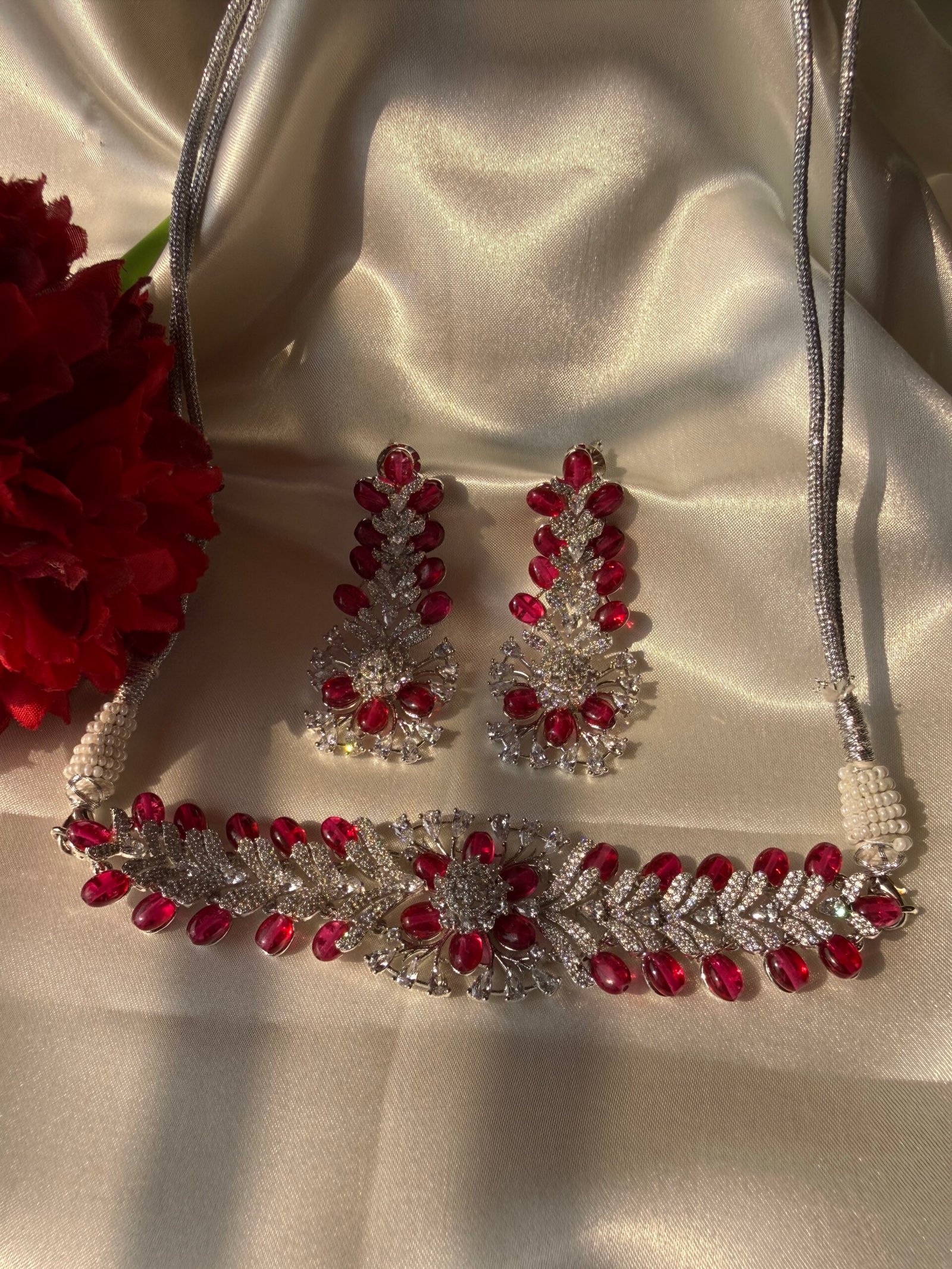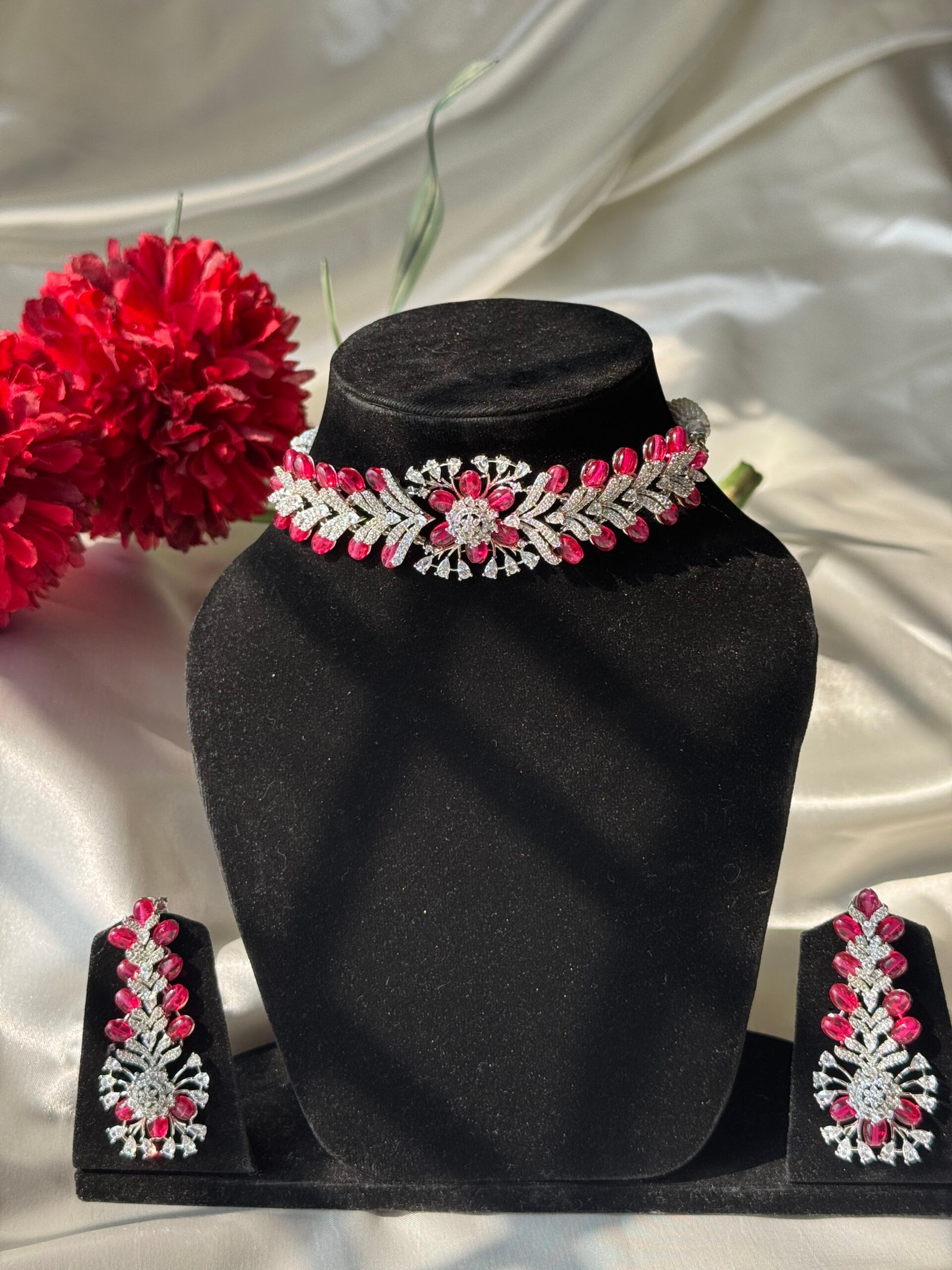 American Diamond with Ruby Choker Set — A Zevy original handcrafted necklace that blends traditional artistry with contemporary polish. American Diamond with Ruby Choker Set.