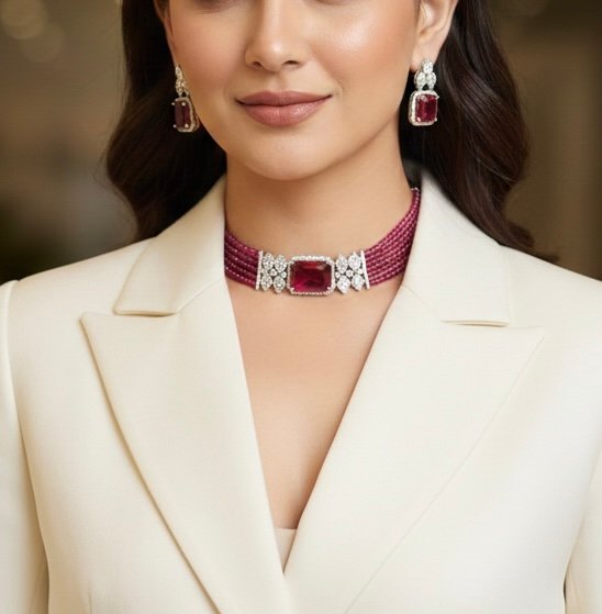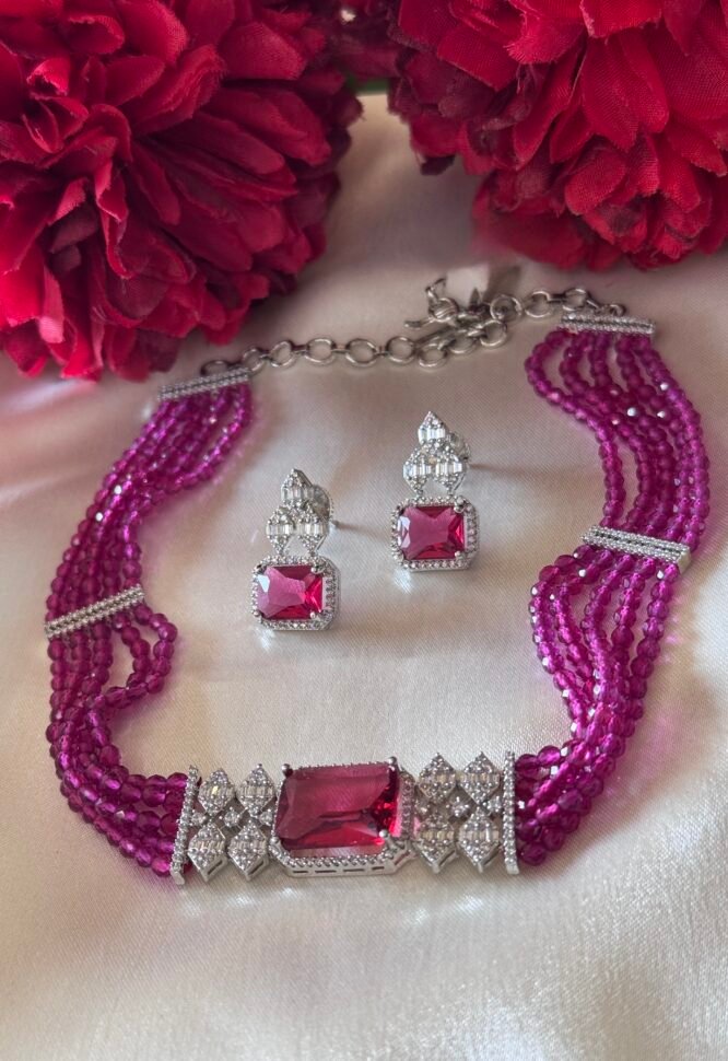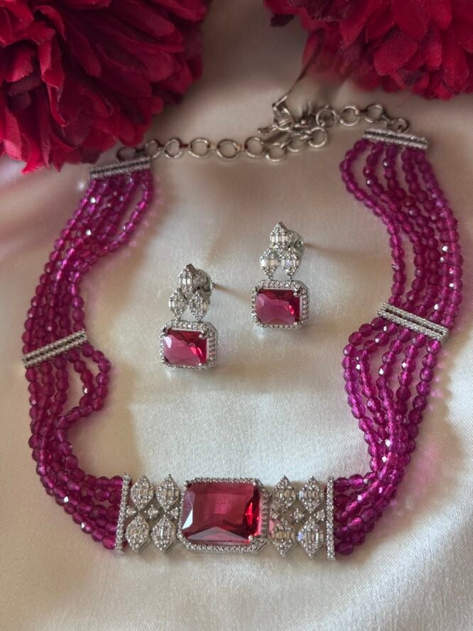 Cubic Zirconia Pink Choker Set