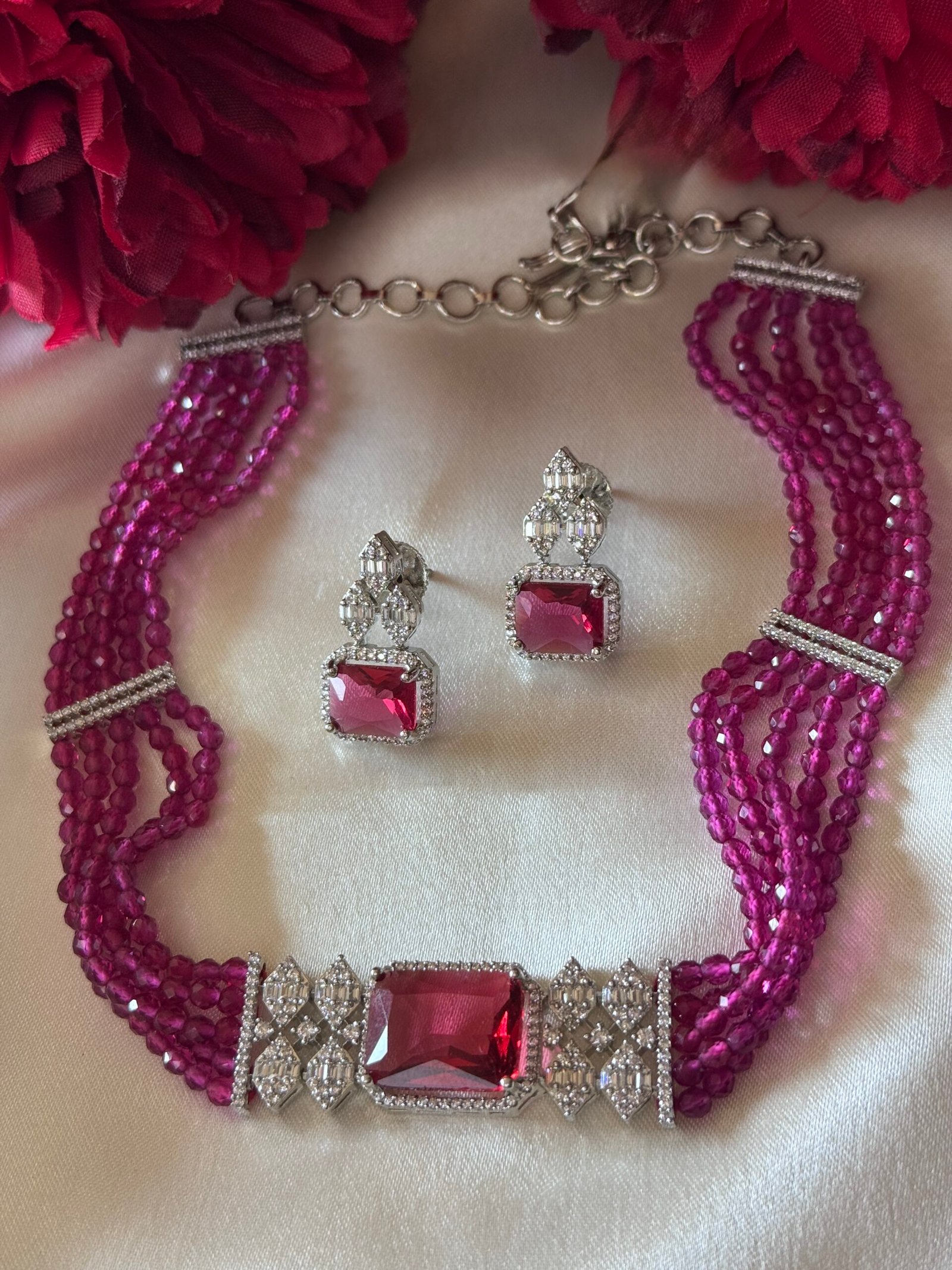 1 review for Cubic Zirconia Pink Choker Set