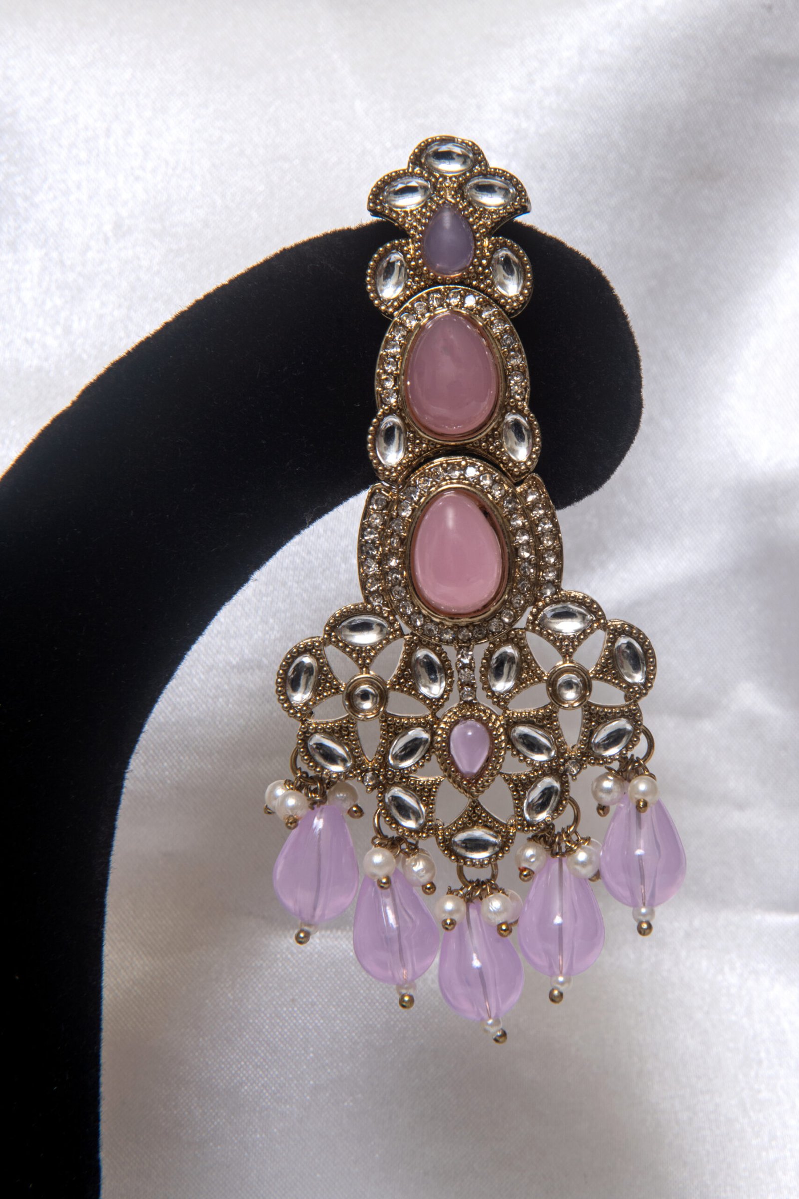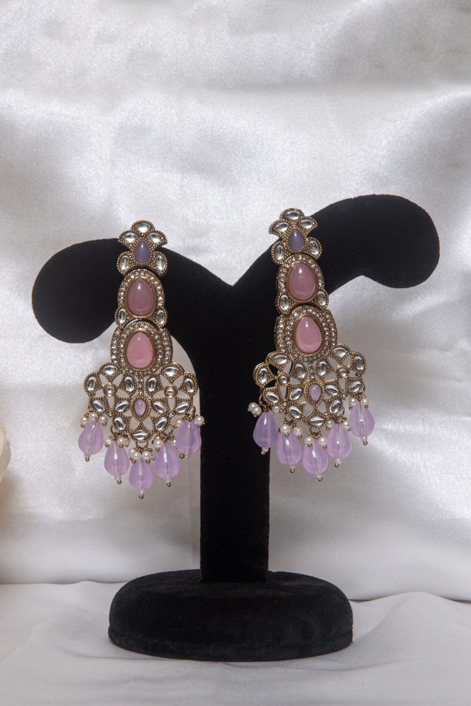 Pastel Pink Kundan Chandelier Earrings with Beaded Drops