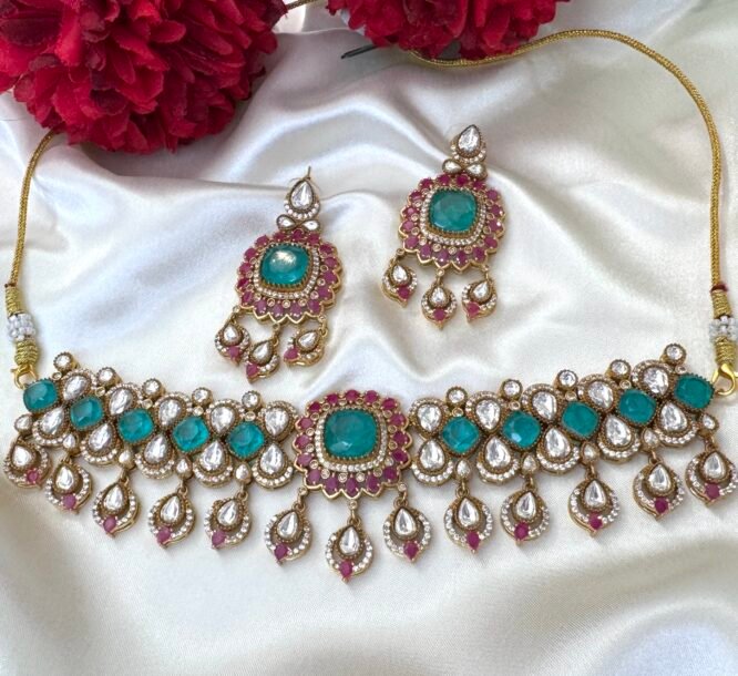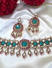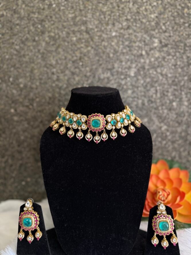 Gold Plated Green Pink Choker Set