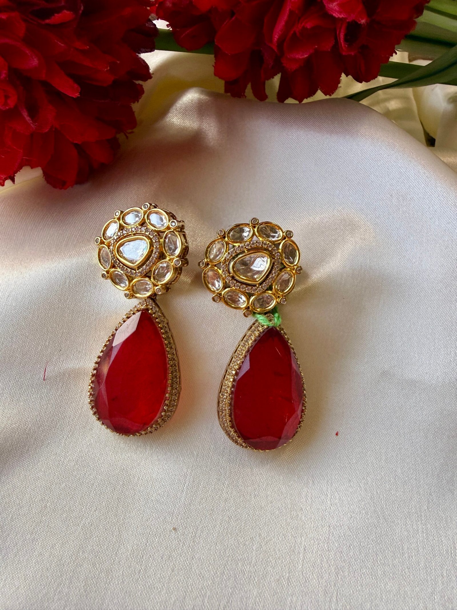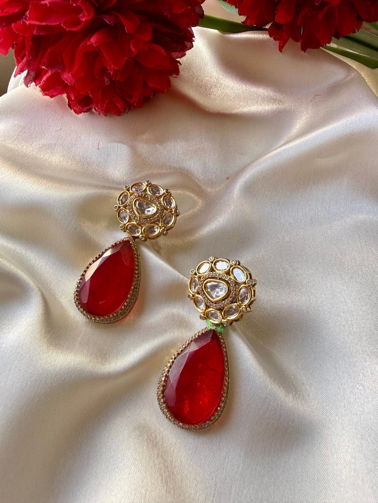 Styling: Style these earrings with festive ethnic wear for weddings, sangeet, and reception events, or pair them with a chic indian-fusion outfit to make an elegant statement at celebrations. For bridal looks, these earrings complement heavier neckpieces or can be the focal point when worn alone.