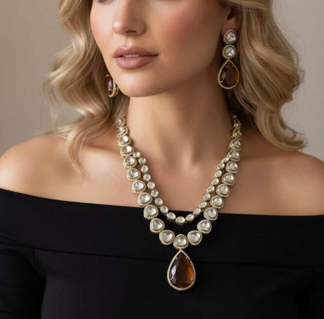 Gold plated Kundan studded necklace