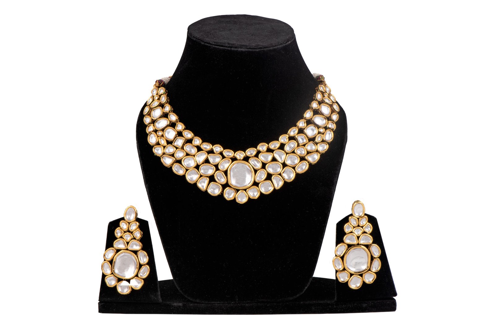 Gold plated uncut Polki kundan necklace brass from Zevy is a finely crafted necklace that blends traditional aesthetics with modern wearability. Made using premium materials and meticulous workmanship, this piece adds instant elegance to sarees, lehengas, and Indo-western outfits. The design highlights include intricately set stones, secure clasps, and a comfortable weight profile so you can wear it through celebrations.