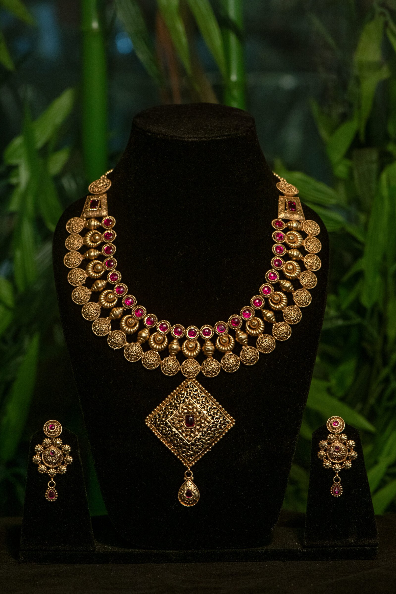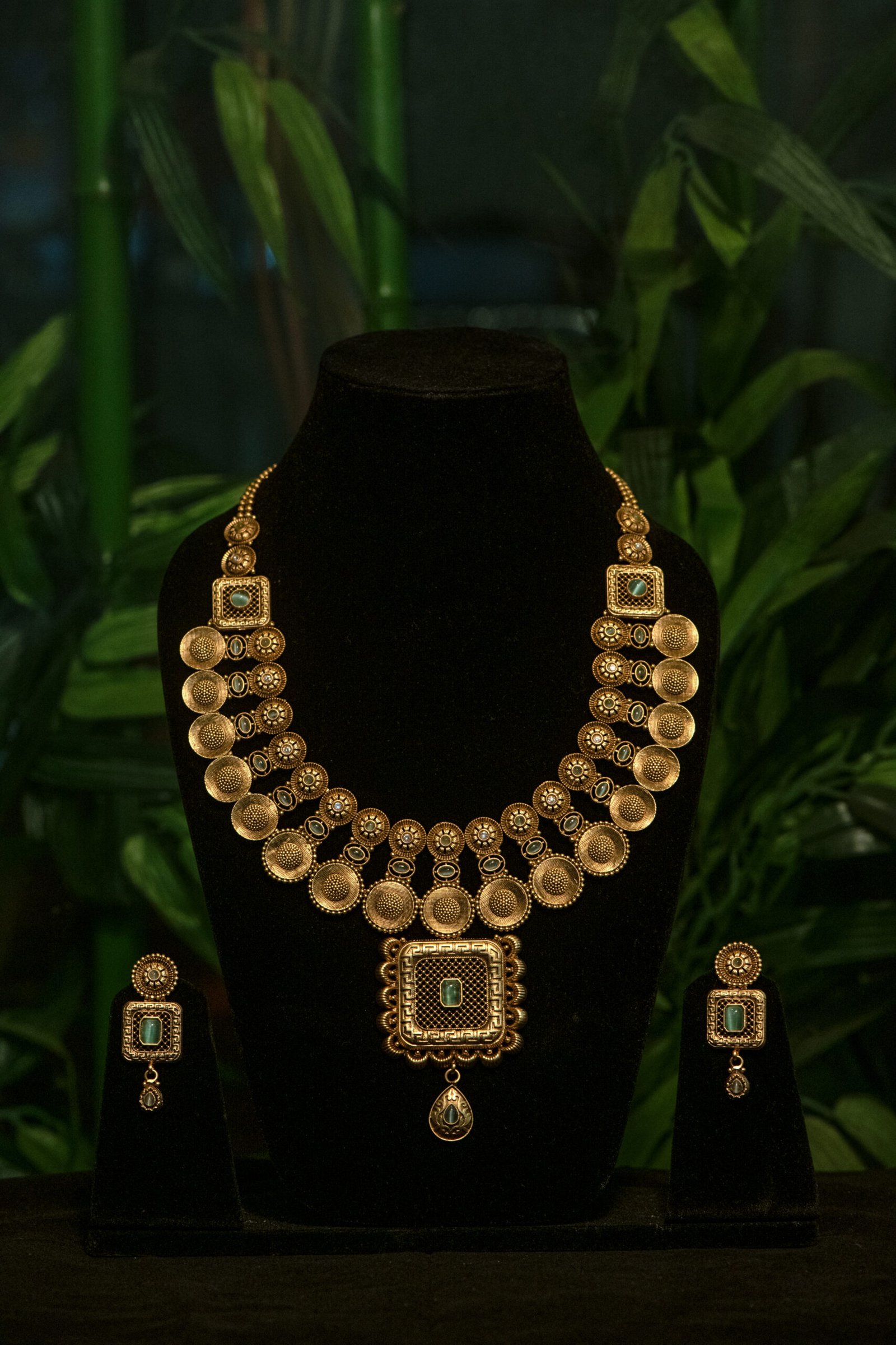 Gold plated with meenakari Matt finished necklace from Zevy is a finely crafted necklace that blends traditional aesthetics with modern wearability. Made using premium materials and meticulous workmanship, this piece adds instant elegance to sarees, lehengas, and Indo-western outfits. The design highlights include intricately set stones, secure clasps, and a comfortable weight profile so you can wear it through celebrations.