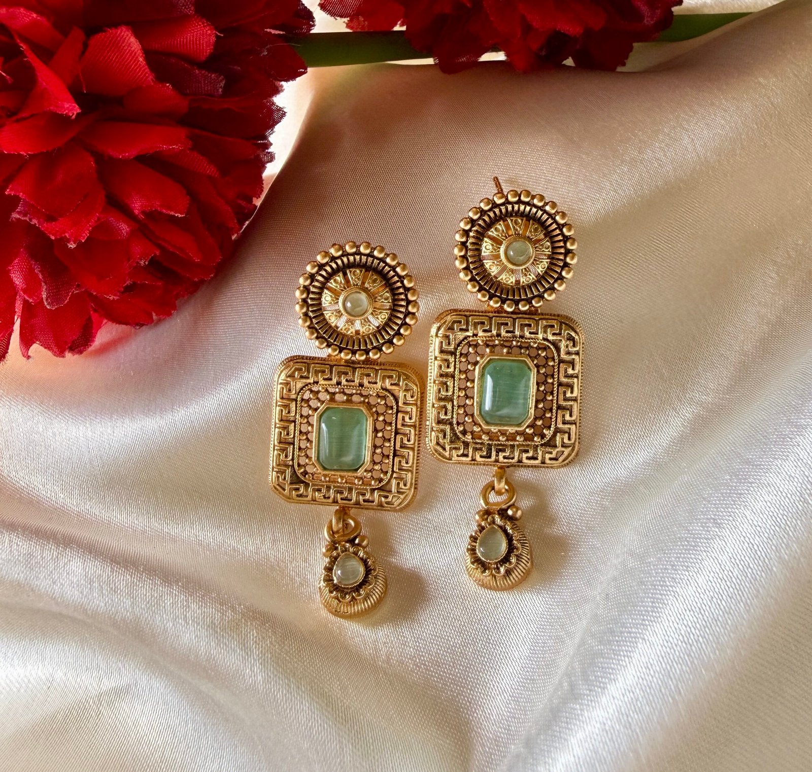 - Material: High-quality metal base with premium plating and stones as described