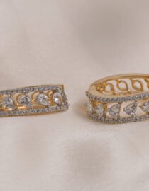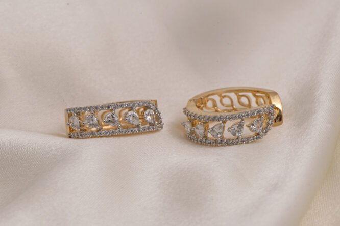 Care & Finish: To maintain the high-shine gold polish, avoid direct contact with water, harsh chemicals, and strong perfumes. Store these handcrafted American Diamond hoops in a soft, dry pouch after use to protect the delicate heart-cut stones from scratches. Simple care preserves the radiant, tarnish-resistant finish, ensuring your luxury jewelry remains a sparkling favorite for years.