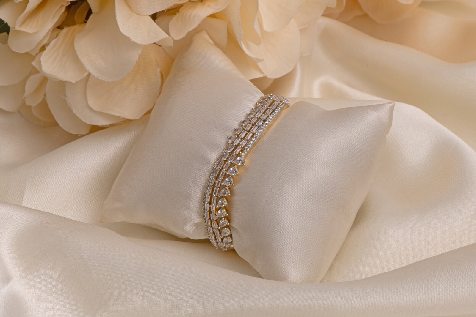 Style this Gold Polished Zircon Kada Bracelet with sarees, lehengas, gowns, or Indo-western outfits. Ideal for weddings, receptions, engagement ceremonies, festive celebrations, and party wear.