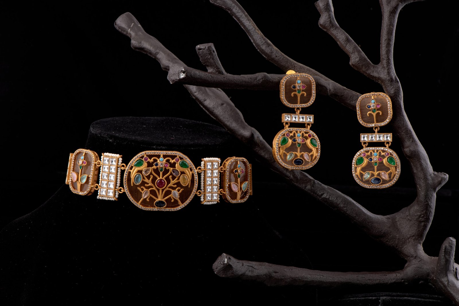 Styling: Style this necklace with classic bridal wear—sarees and lehengas—for weddings and festive celebrations, or pair it with Indo-western outfits for a contemporary fusion statement. For sets that include matching earrings, coordinate the earrings with hair and makeup for a cohesive bridal look. This piece also works beautifully as the focal point when layered with delicate chains for a modern aesthetic.