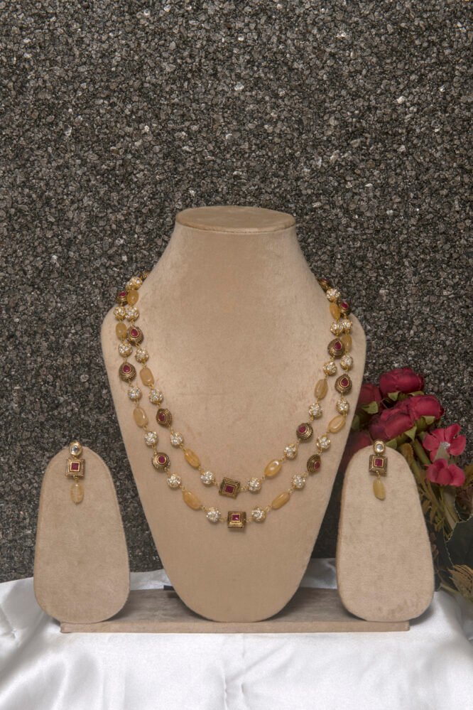 Gold Polished Tanjore Mala Yellow