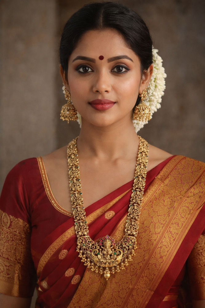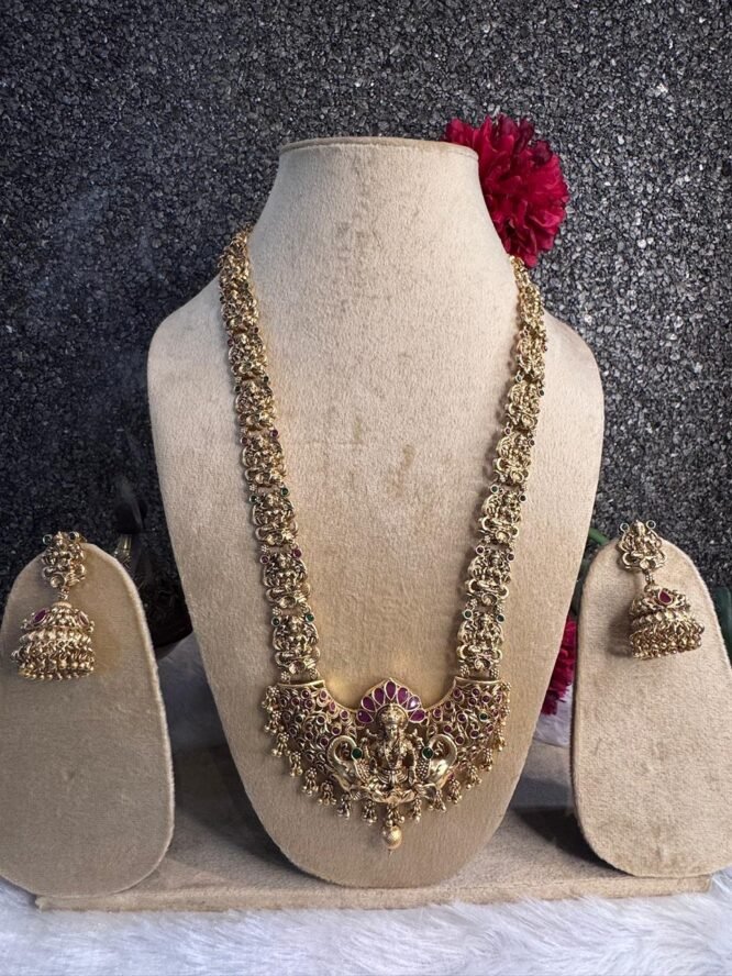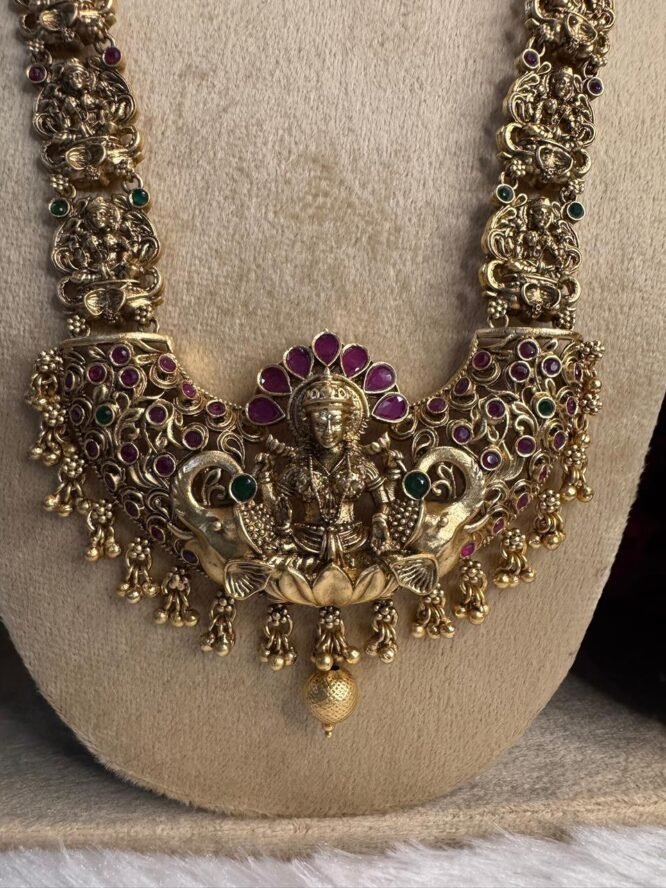 Pairs beautifully with Kanjeevaram sarees, silk drapes, bridal lehengas, and traditional outfits. The medium-long length makes it perfect as a statement piece or for layering during weddings, festive celebrations, and cultural occasions.