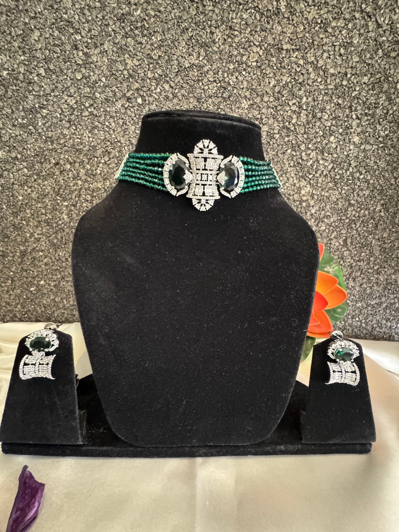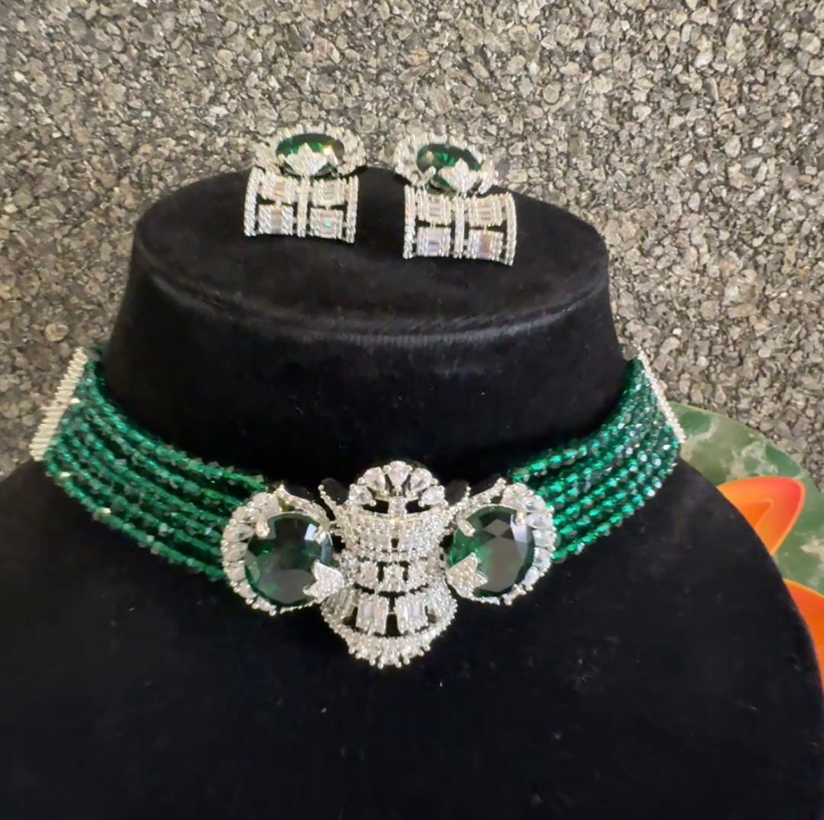 Green Emerald with CZ Stone Choker Set — A Zevy original handcrafted necklace that blends traditional artistry with contemporary polish. Green Emerald with CZ Stone Choker Set.