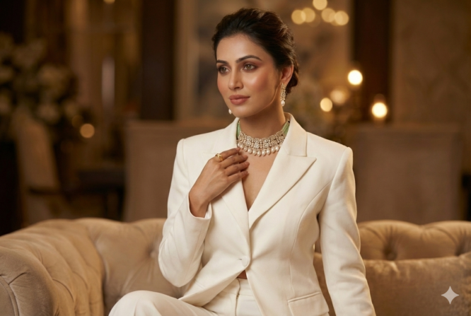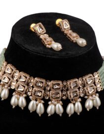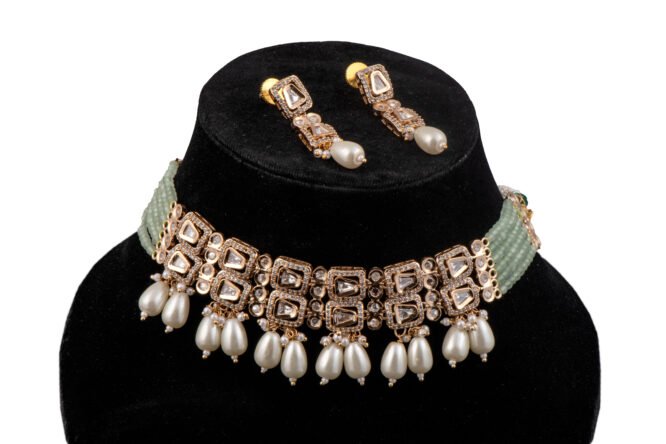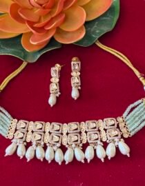 Kundan with AD and pearl chokar set green colour from Zevy is a finely crafted necklace that blends traditional aesthetics with modern wearability. Made using premium materials and meticulous workmanship, this piece adds instant elegance to sarees, lehengas, and Indo-western outfits. The design highlights include intricately set stones, secure clasps, and a comfortable weight profile so you can wear it through celebrations.