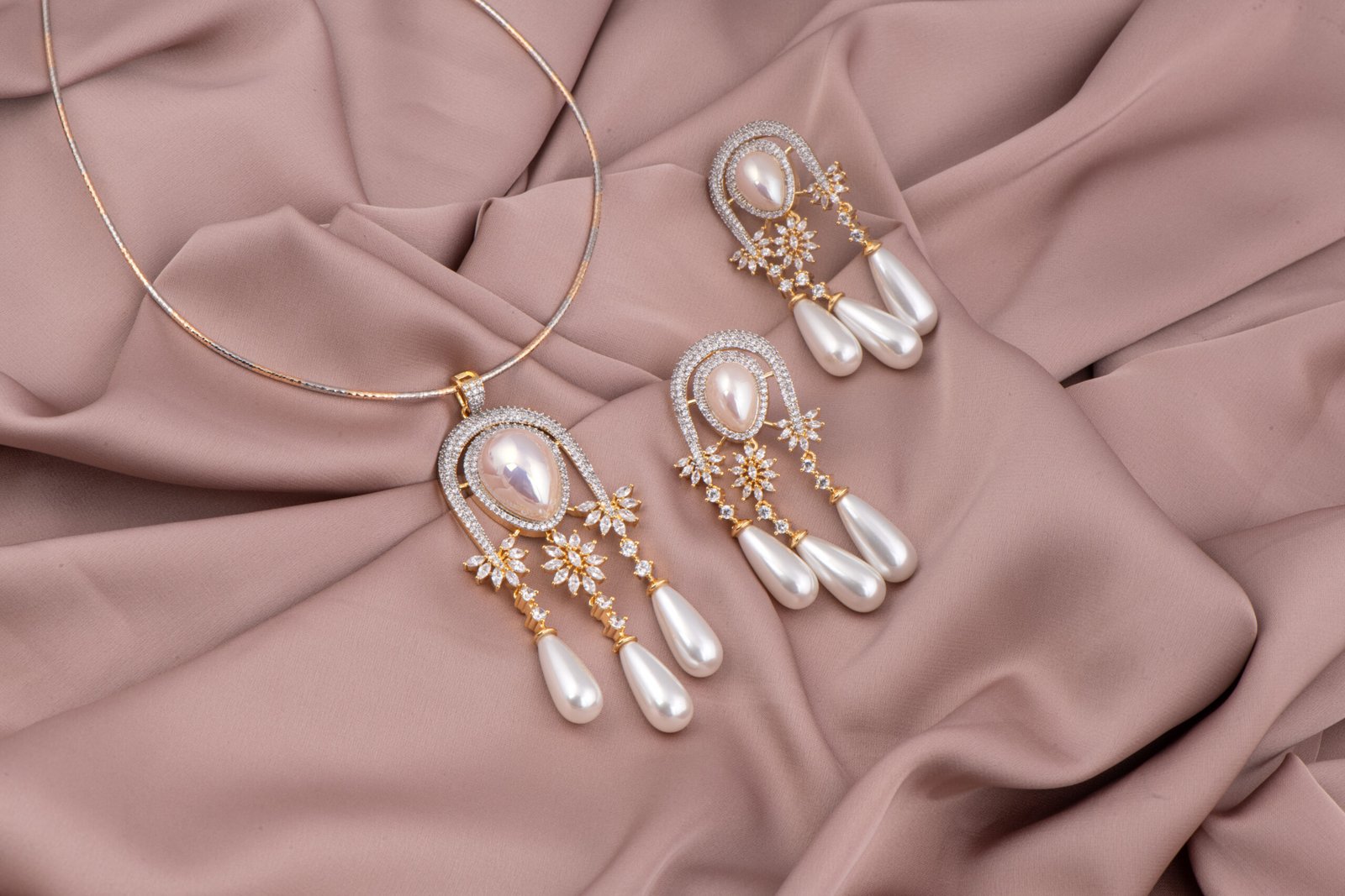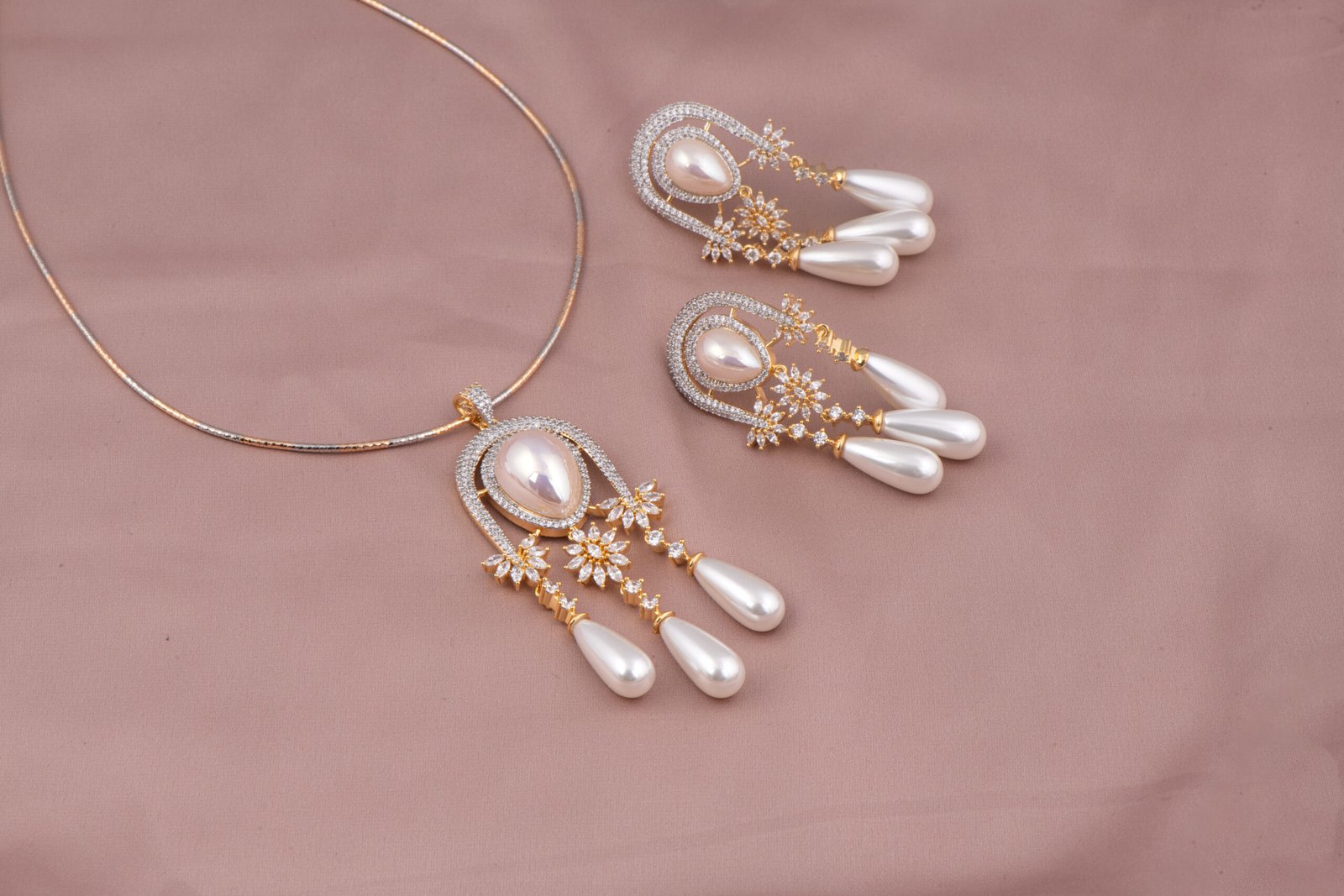 Pearl & AD Pendant Set — A Zevy original, handcrafted with attention to detail and inspired by timeless design aesthetics. 1320 Pearl and Ad pendant set ( Sold out)