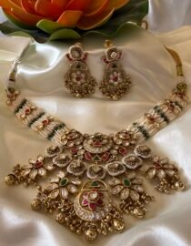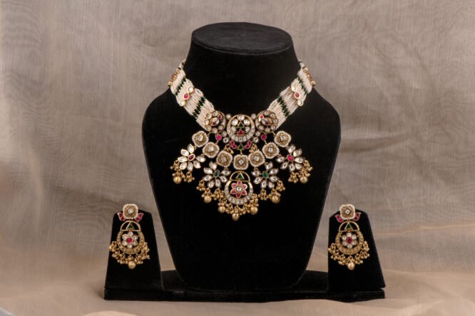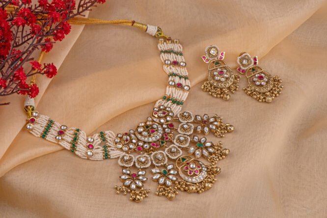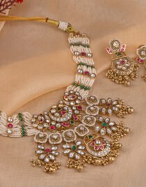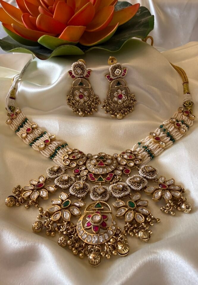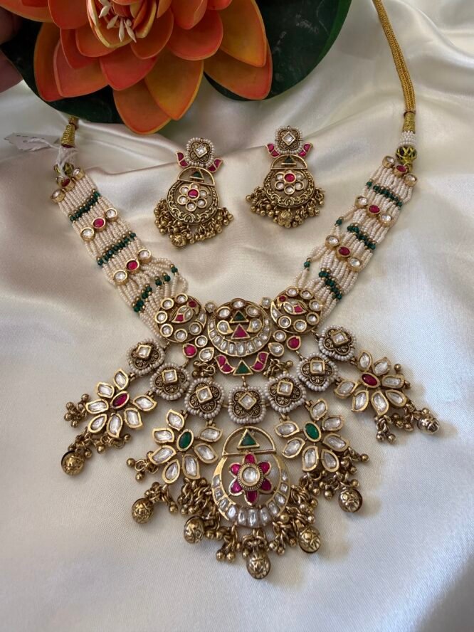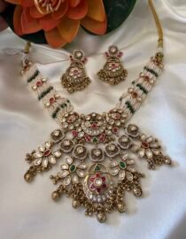 Pink and green kundan RANI HAAR With multi layer pearl chain from Zevy is a finely crafted necklace that blends traditional aesthetics with modern wearability. Made using premium materials and meticulous workmanship, this piece adds instant elegance to sarees, lehengas, and Indo-western outfits. The design highlights include intricately set stones, secure clasps, and a comfortable weight profile so you can wear it through celebrations.