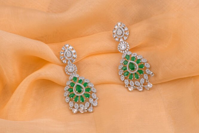 Craftsmanship & Design: These earrings feature a silver-toned base set with high-quality emerald-hued stones. The design showcases a tiered floral pattern rimmed with shimmering zircons, finished with delicate crystal droplets that catch the light with every move.