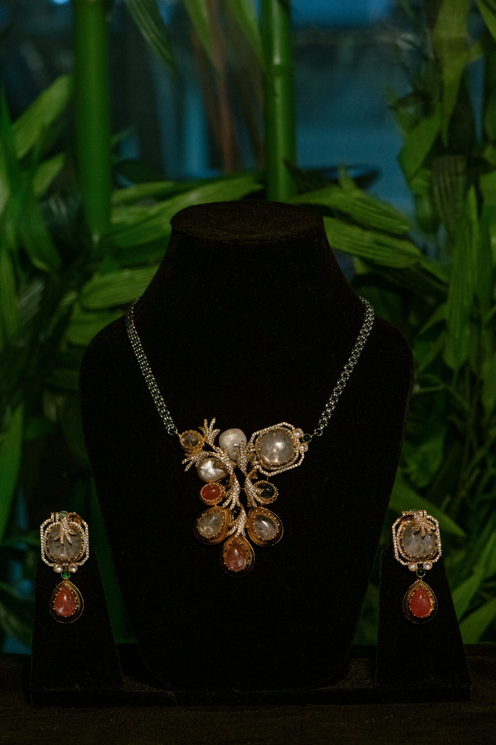 Sabyasachi Gemstone Multi Coloured necklace from Zevy is a finely crafted necklace that blends traditional aesthetics with modern wearability. Made using premium materials and meticulous workmanship, this piece adds instant elegance to sarees, lehengas, and Indo-western outfits. The design highlights include intricately set stones, secure clasps, and a comfortable weight profile so you can wear it through celebrations.
