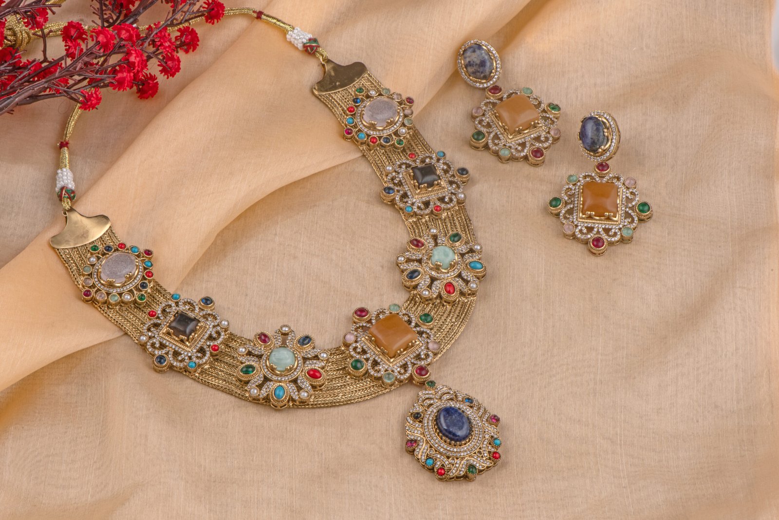 - Material: High-quality metal base with premium plating and stones as described