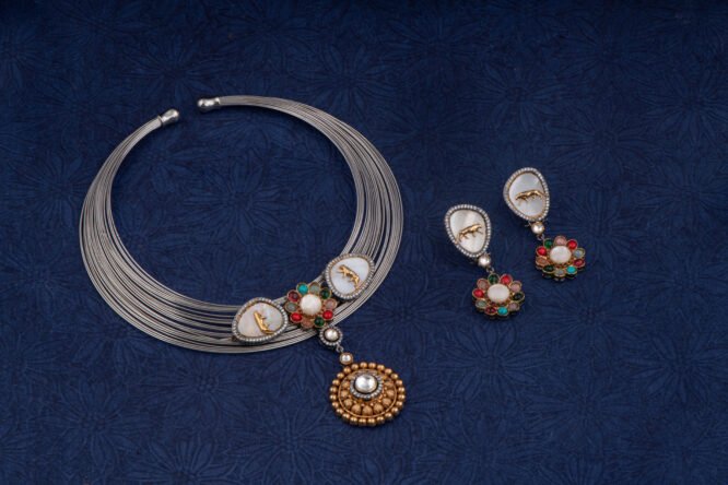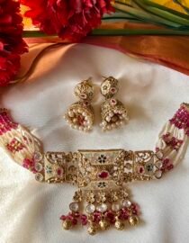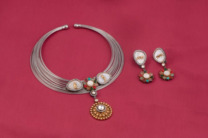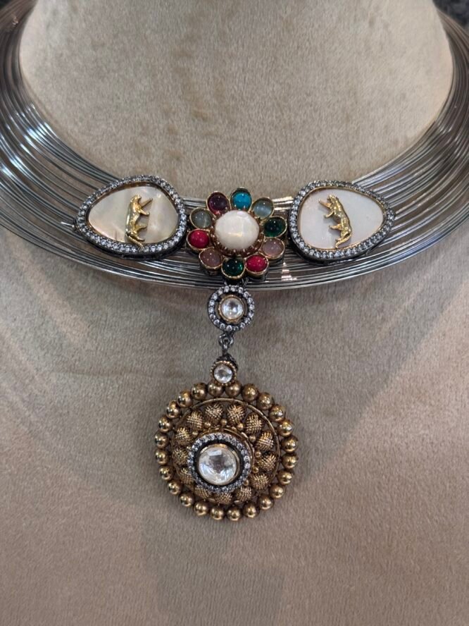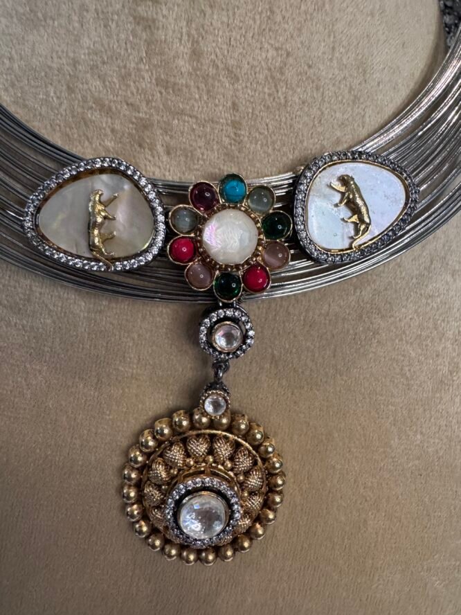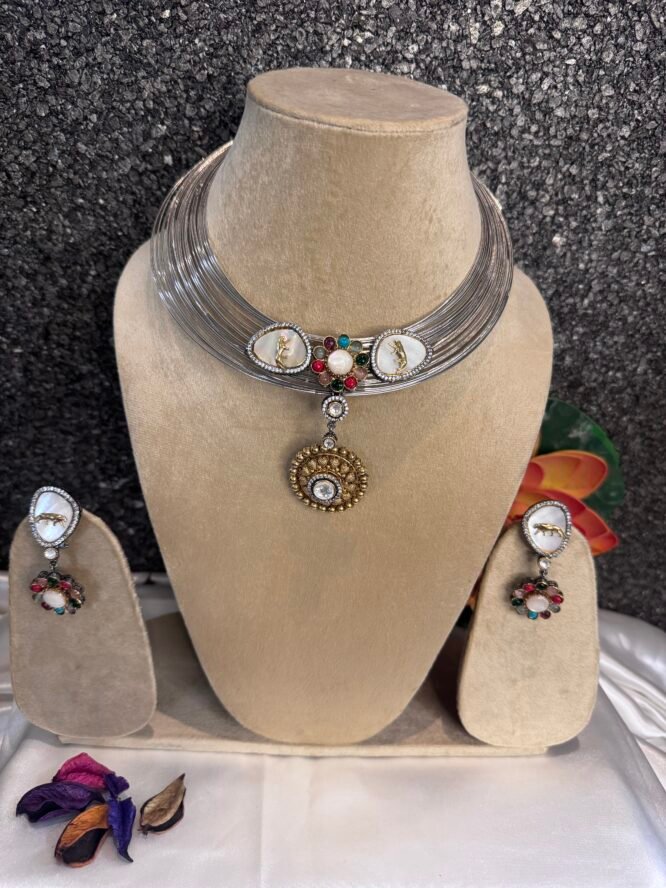 Styling: Style this necklace with classic bridal wear—sarees and lehengas—for weddings and festive celebrations, or pair it with Indo-western outfits for a contemporary fusion statement. For sets that include matching earrings, coordinate the earrings with hair and makeup for a cohesive bridal look. This piece also works beautifully as the focal point when layered with delicate chains for a modern aesthetic.