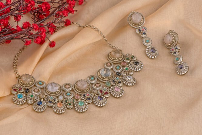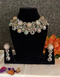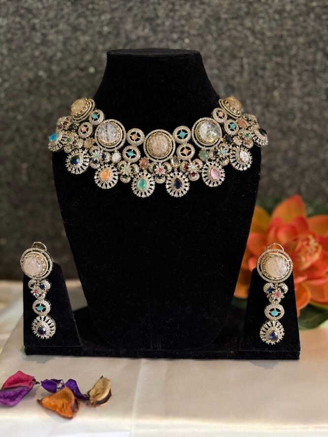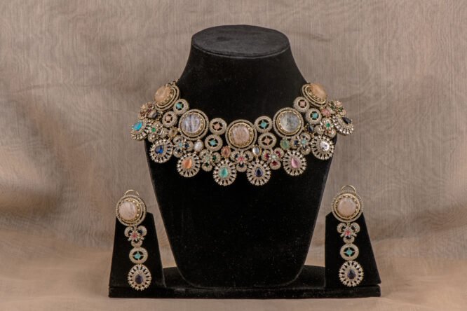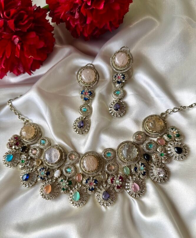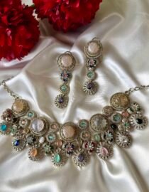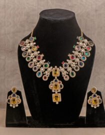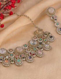Sabyasachi inspired Multicoloured necklace from Zevy is a finely crafted necklace that blends traditional aesthetics with modern wearability. Made using premium materials and meticulous workmanship, this piece adds instant elegance to sarees, lehengas, and Indo-western outfits. The design highlights include intricately set stones, secure clasps, and a comfortable weight profile so you can wear it through celebrations.