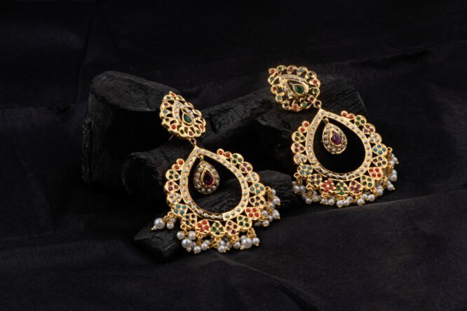 Traditional Multicolor Kundan Pearl Chandbali Earrings