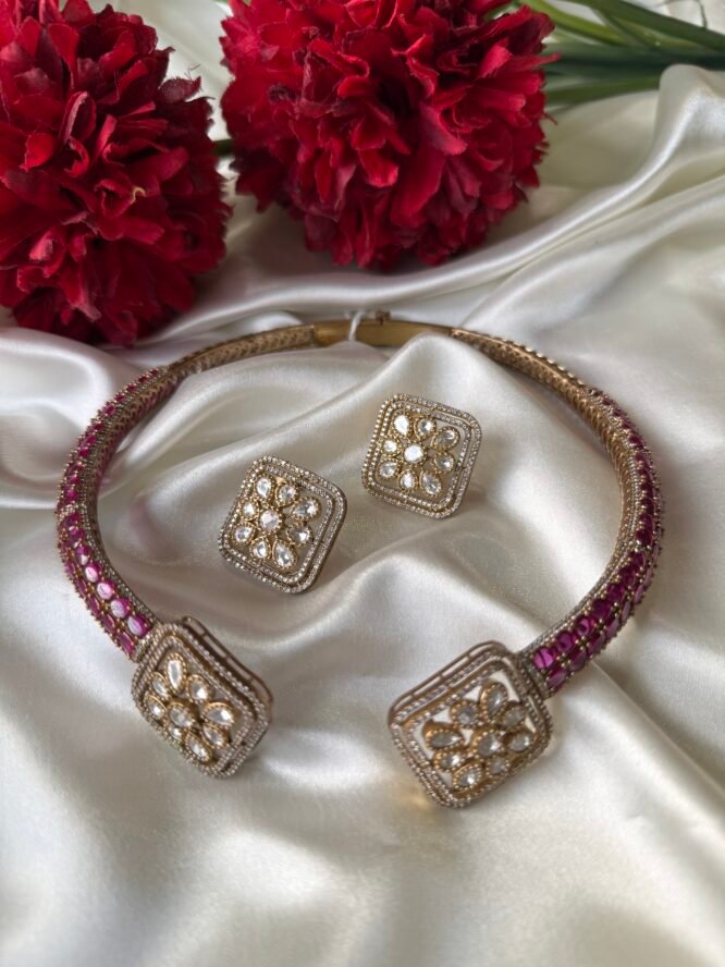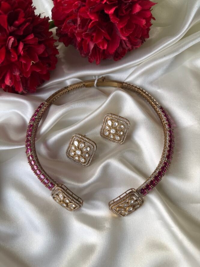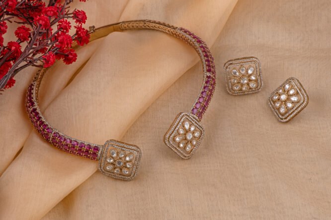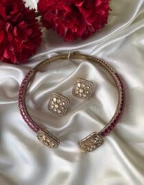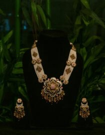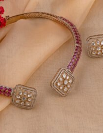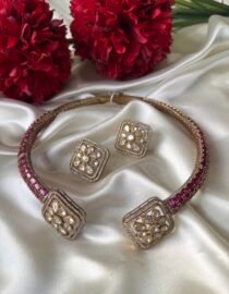 This elegant neckpiece features a beautifully contoured design that rests gracefully on your collarbone, offering both comfort and sophistication. Whether paired with a saree, lehenga, or a contemporary ensemble, the Hasli Necklace enhances your neckline with its sleek and polished finish.